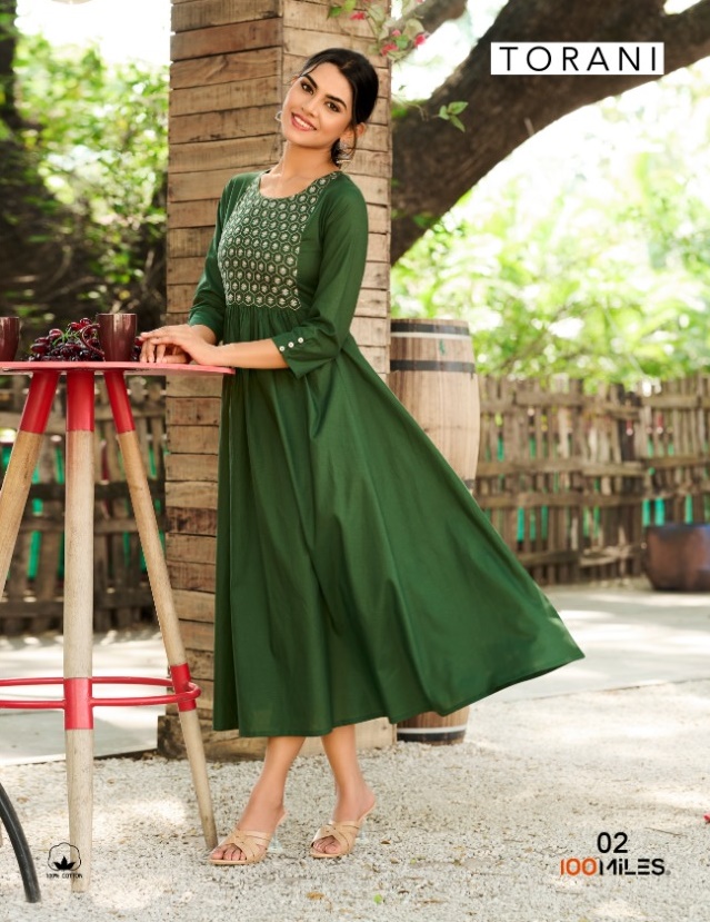 100 MILES TORANI PURE GIZA COTTON GOWN STYLE KURTIS LATEST CATALOGUE
