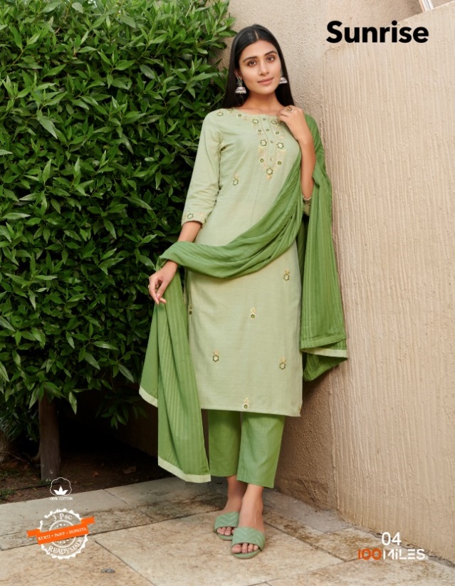100 MILES SUNRISE COTTON KURTIS PANT WITH DUPATTA LATEST CATALOGUE