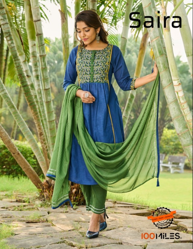 100 MILES SAIRA READYMADE KURTI PANT WITH DUPATTA LATEST CATALOGUE