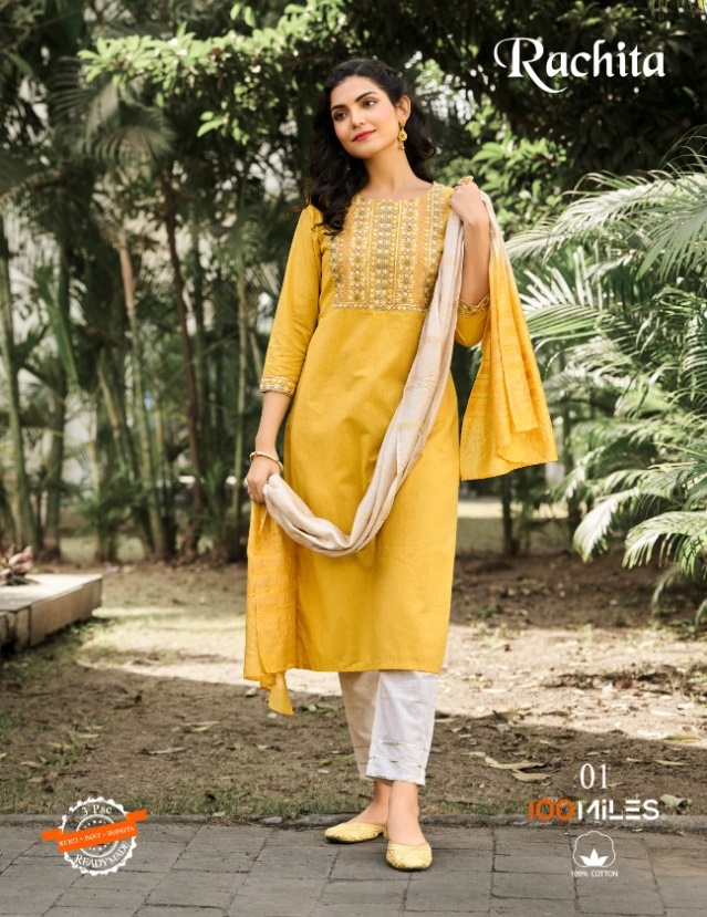 100 MILES RACHITA KURTI PANT WITH DUPATTA LATEST COLLECTION