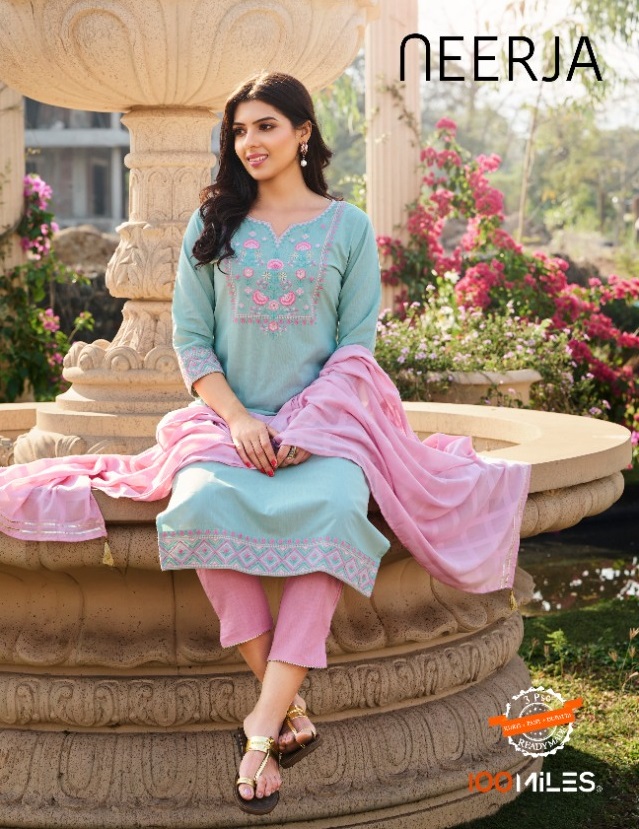 100 MILES NEERJA KURTI PANT WITH DUPATTA AT WHOLESALER SURAT