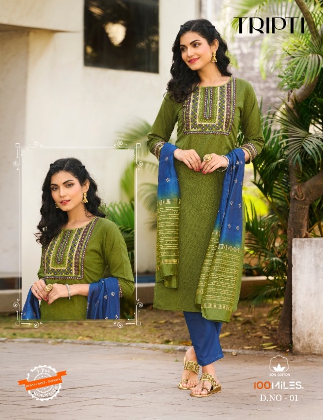 100 MILES TRIPTI KURTI PANT WITH DUPATTA AT WHOLESALE