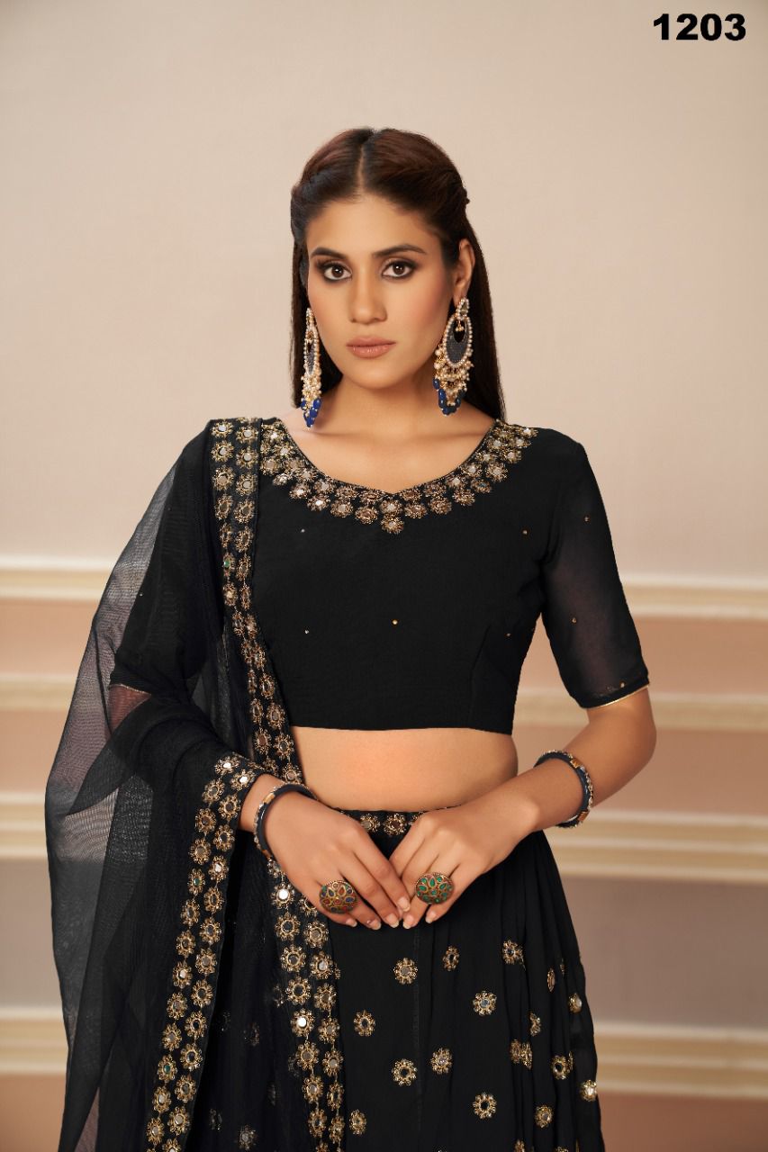 AAWIYA BLACK MIRROR GEORGETTE DESIGNER LEHENGA CHOLI AT WHOLESALER