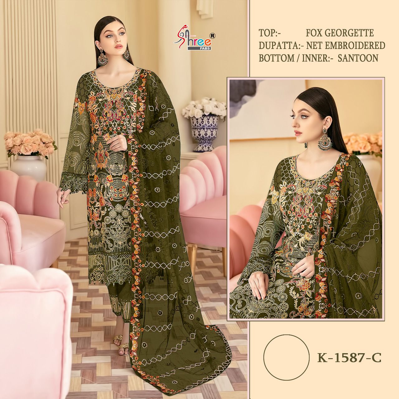 SHREE FABS K 1587 SERIES FOUX GEORGETTE EMBROIDERY SUITS WHOLESALE