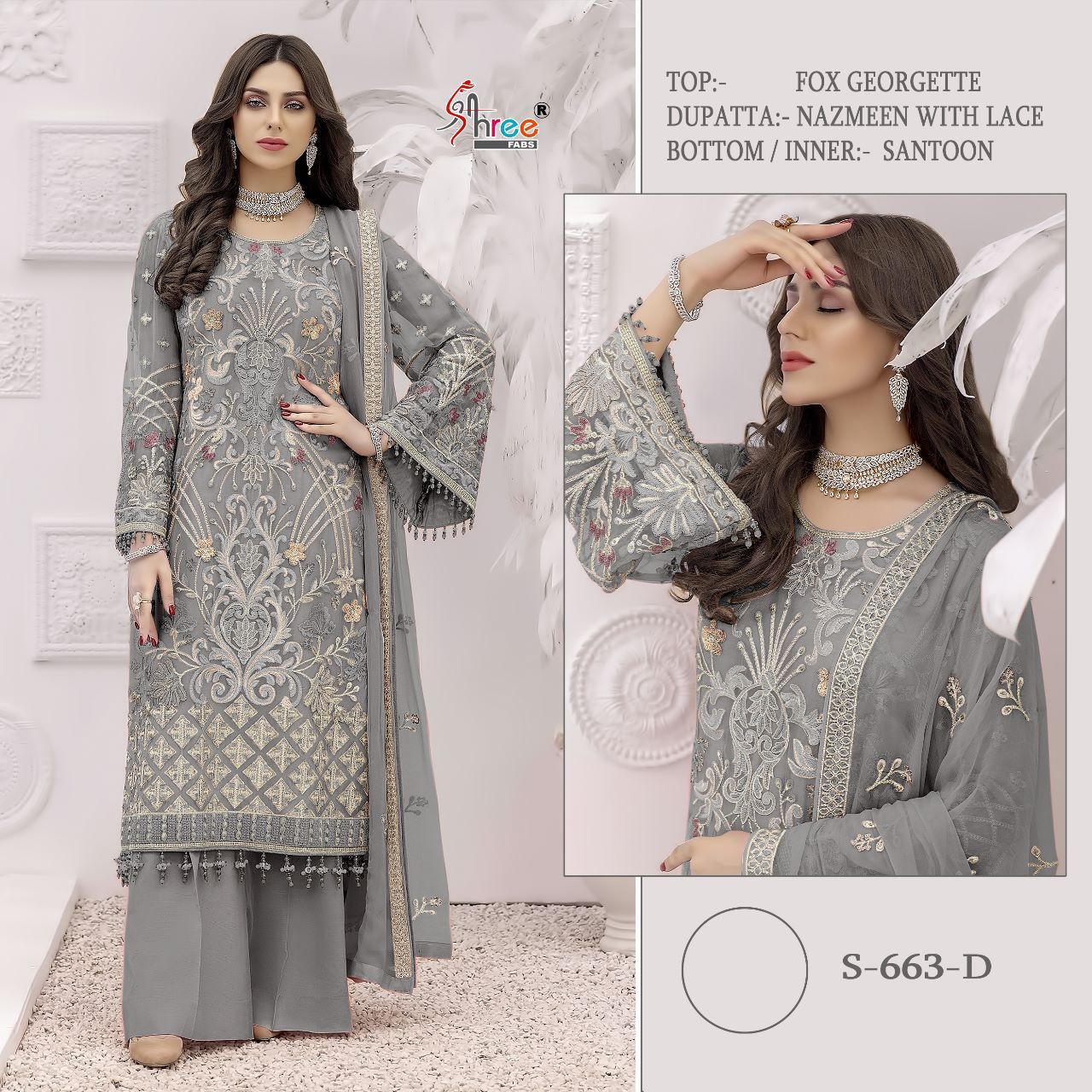 SHREE FABS S 663 SERIES FOUX GEORGETTE PAKISTANI SUITS WHOLESALE
