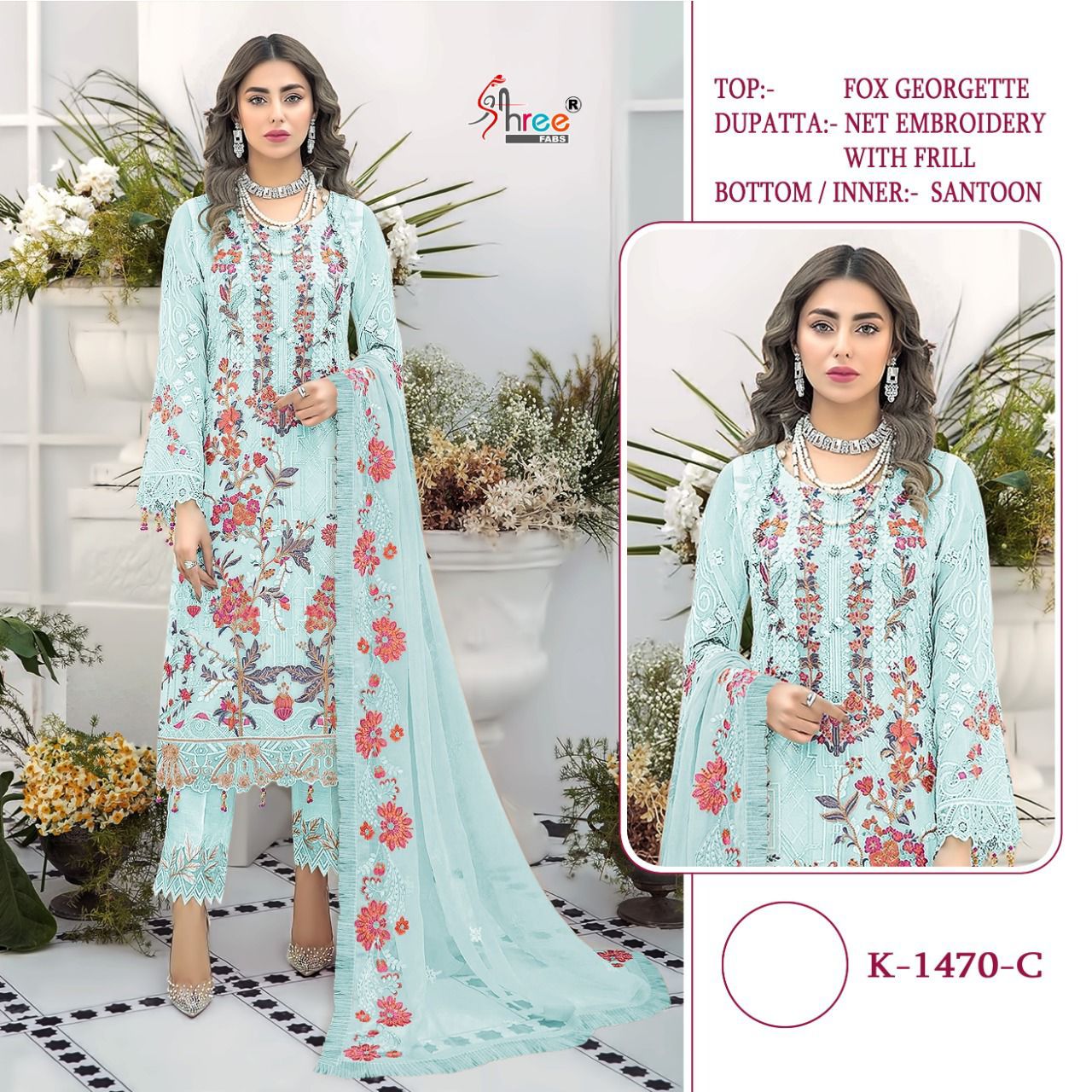 SHREE FABS K 1470 SERIES FOUX GEORGETTE PAKISTANI SUITS AT SURAT