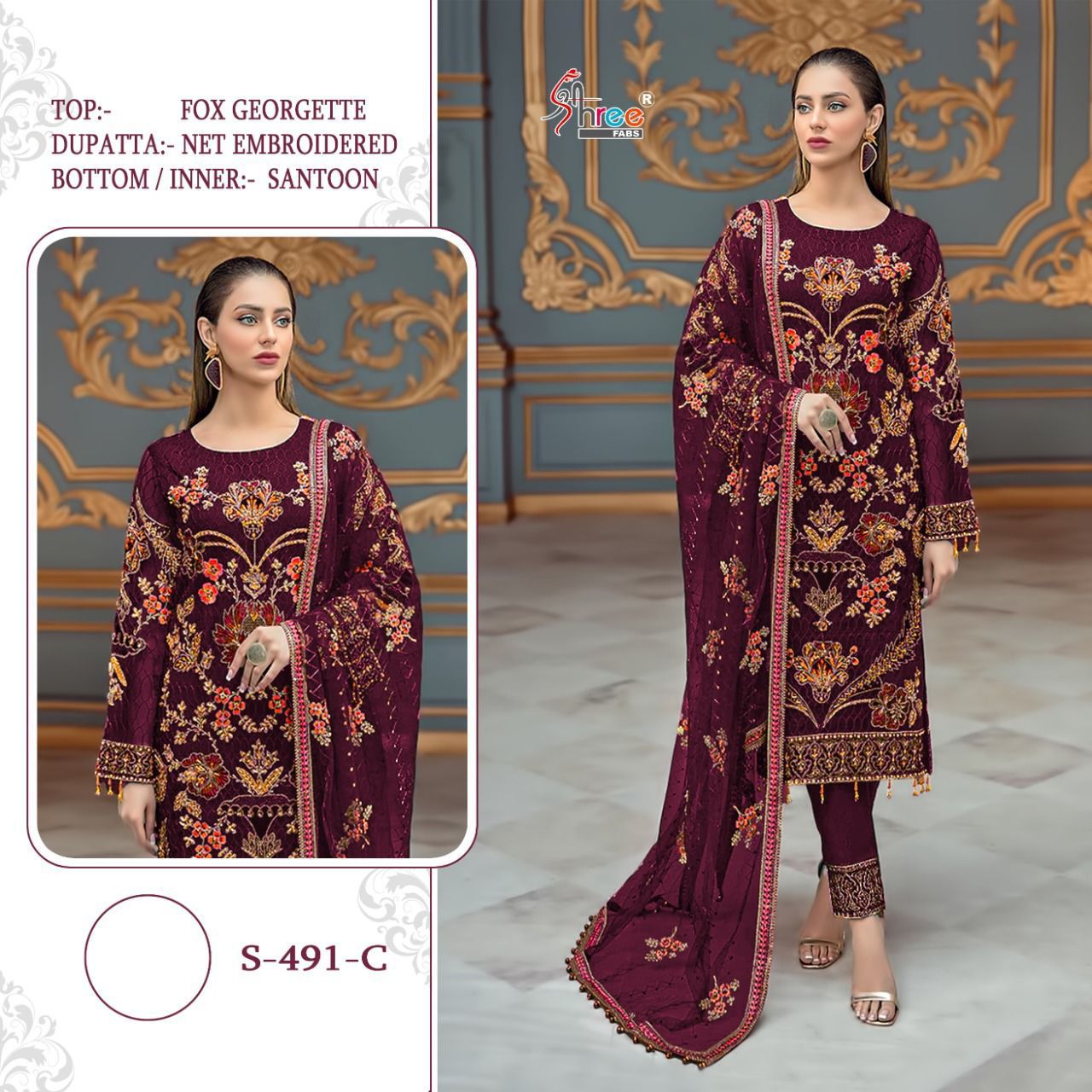 SHREE FABS S 491 COLOUR FOUX GEORGETTE PAKISTANI SUITS WHOLESALE