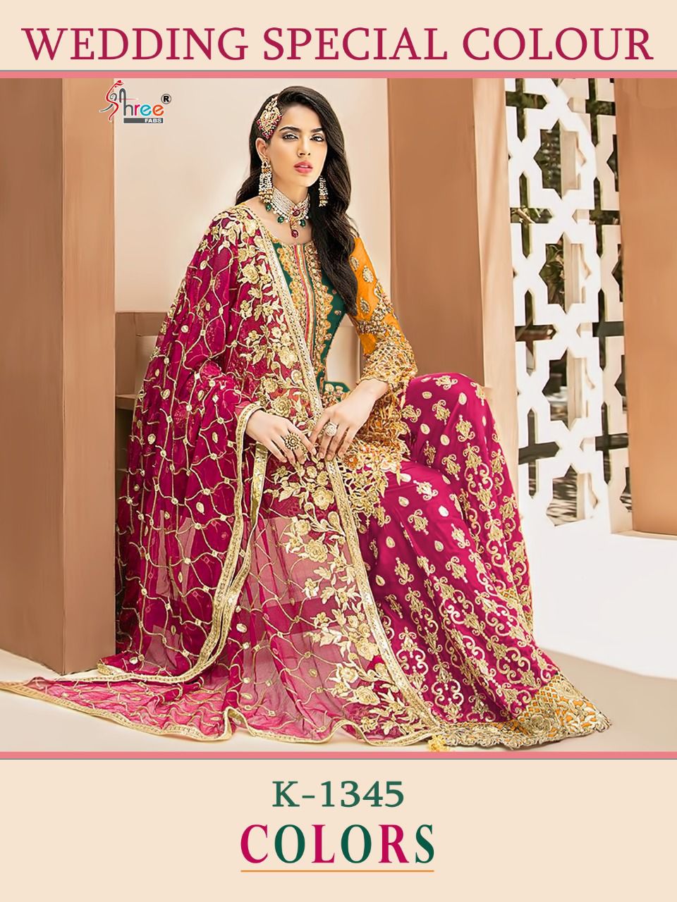 SHREE FABS WEDDING SPECIAL COLOUR K 1345 LATEST SALWAR SUITS WHOLESALE