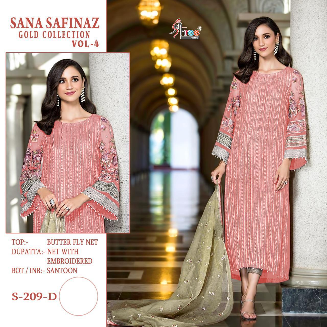 SHREE FABS SANA SAFINAZ GOLD COLLECTION VOL 4 S 209 PAKISTANI SUITS WHOLESALER