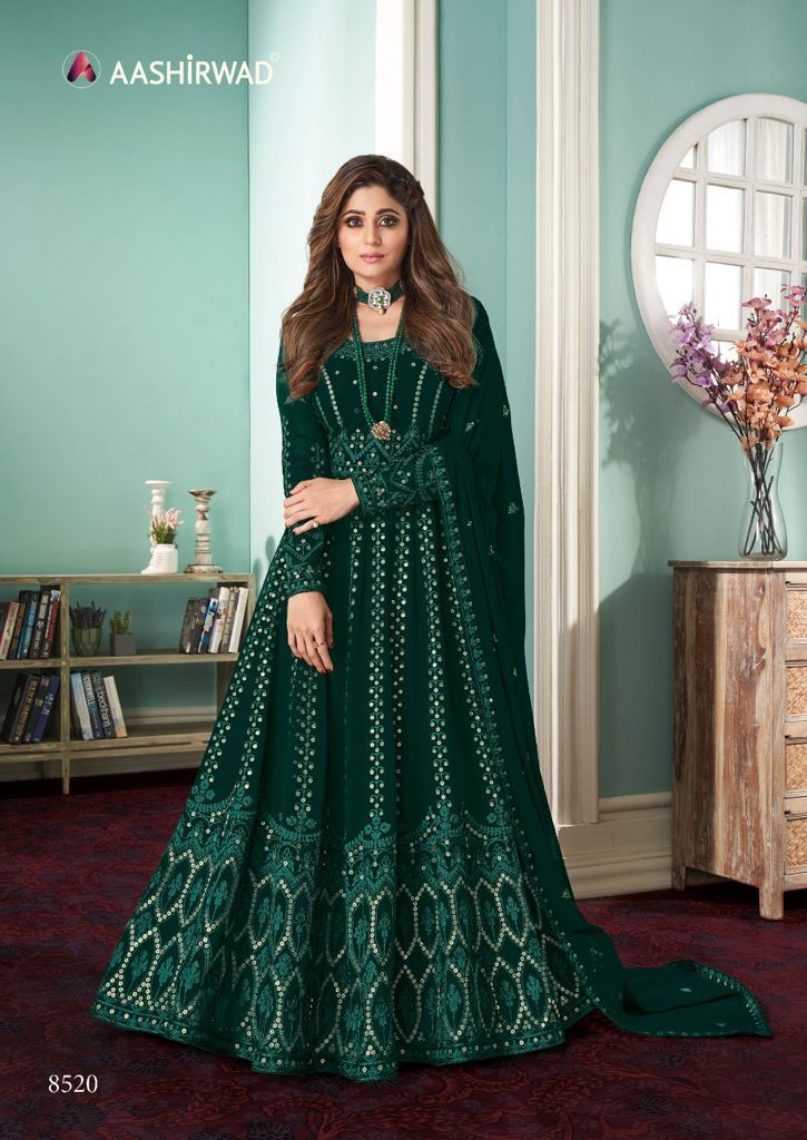 AASHIRWAD CREATION ROSE 8519 TO 8523 HEAVY GEORGETTE SUITS AT WHOLESALE