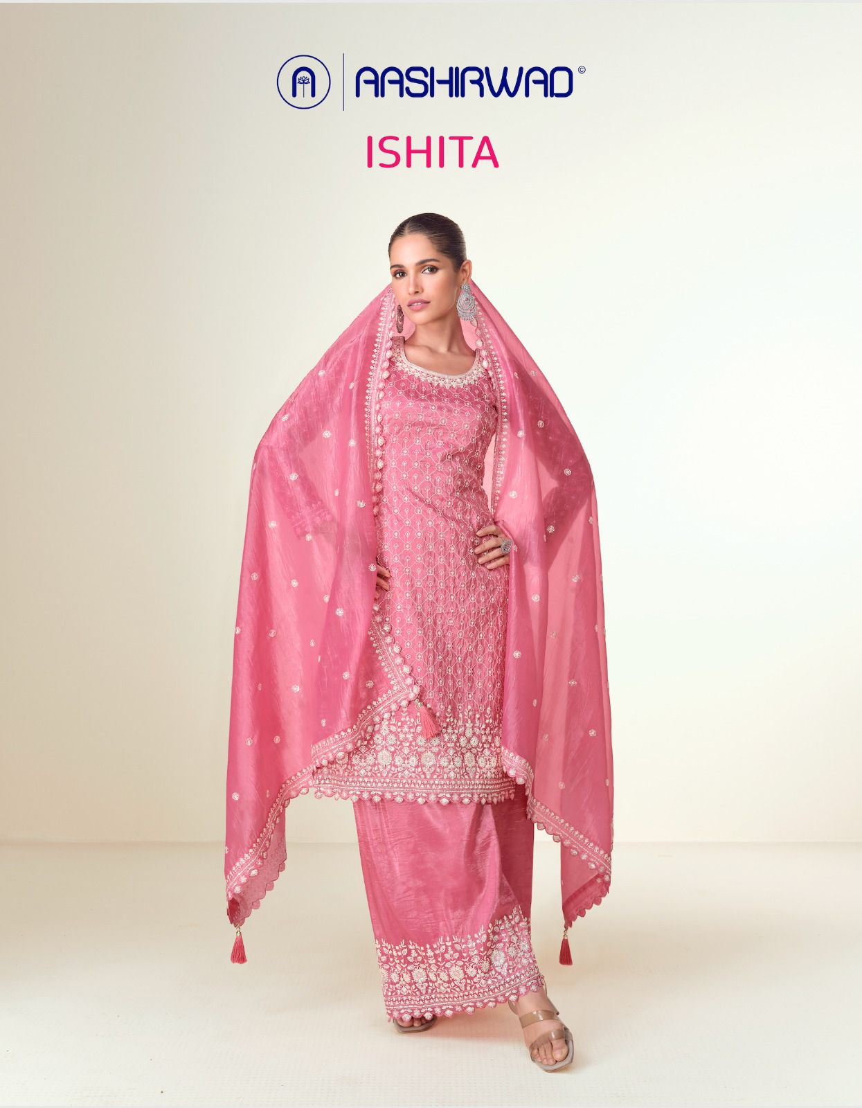 AASHIRWAD CREATION ISHITA TISSUE CRUSH FANCY SUITS SUPPLIER