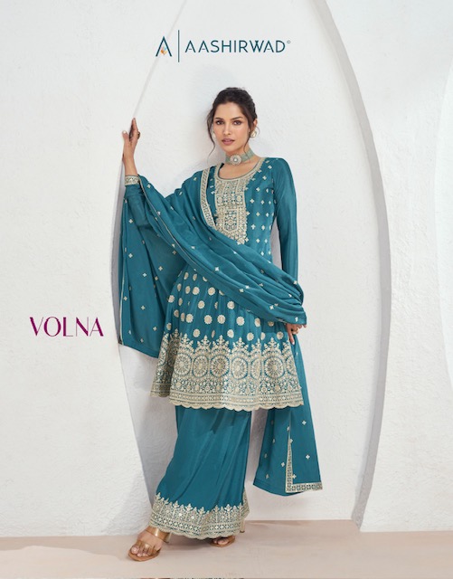 AASHIRWAD CREATION VOLNA DESIGNER CHINNON SILK SUITS SUPPLIER IN SURAT