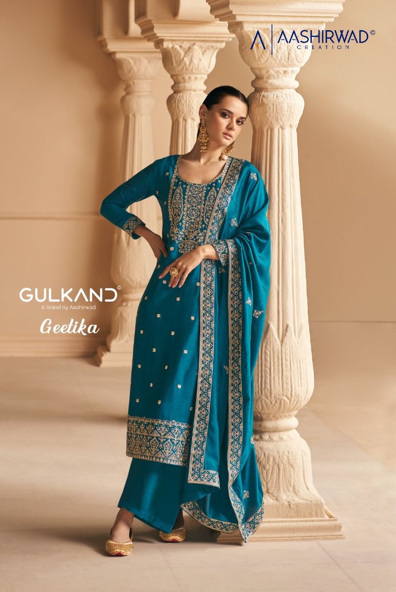 AASHIRWAD GULKAND GEETIKA PREMIUM SILK SALWAR SUITS SUPPLIER SURAT