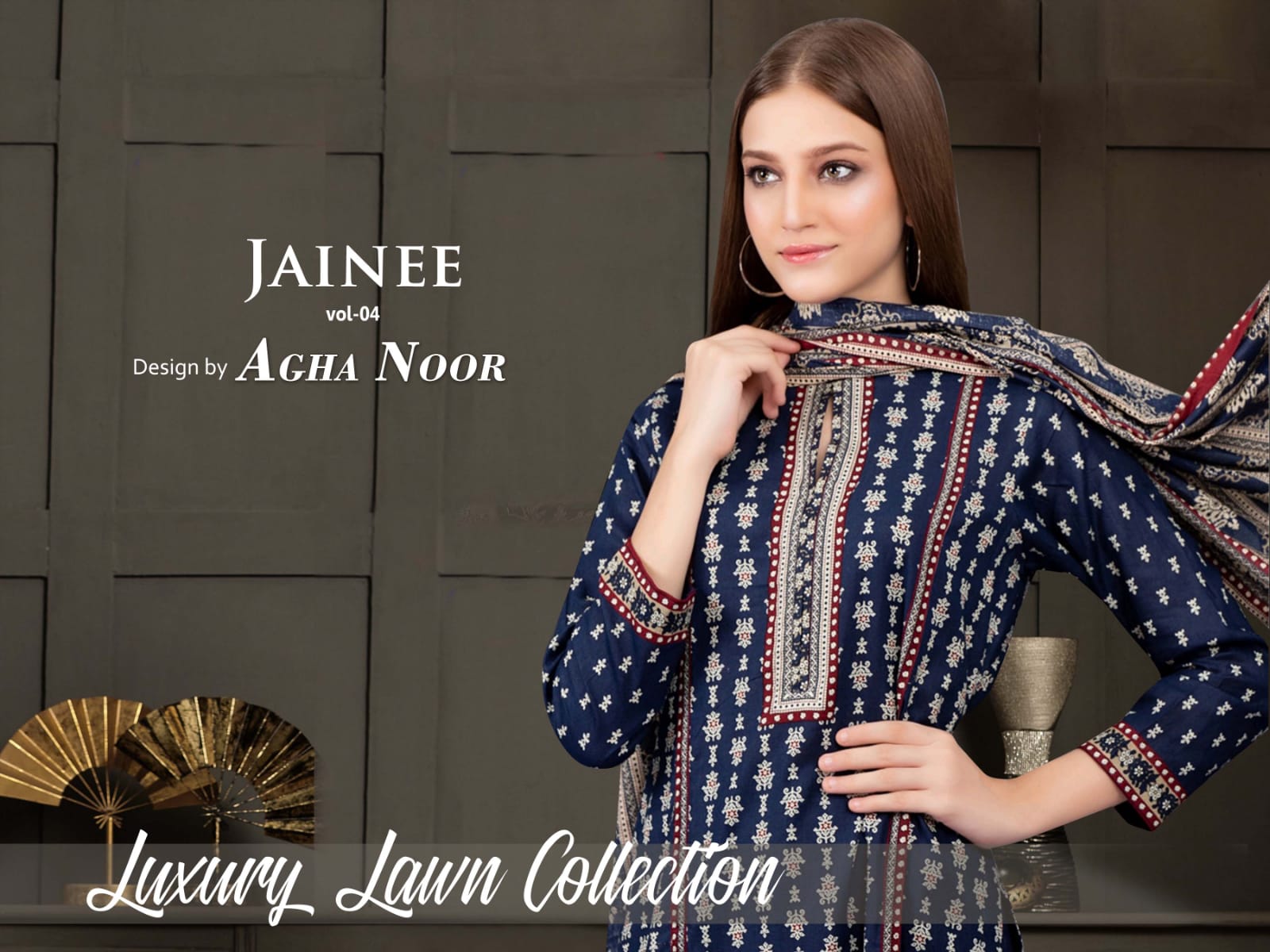 AGHA NOOR JAINEE VOL 4 LUXURY LAWN COLLECTION PAKISTANI SUITS WHOLESALE