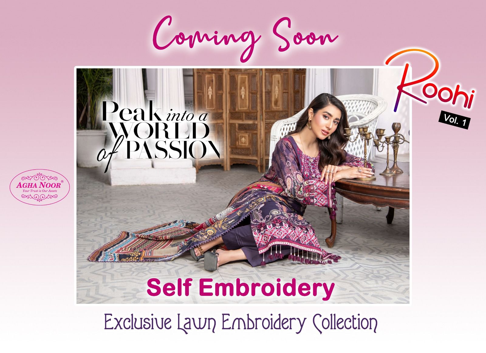 AGHA NOOR ROOHI VOL 1 SELF EMBROIDERY KARACHI SUITS WHOLESALE