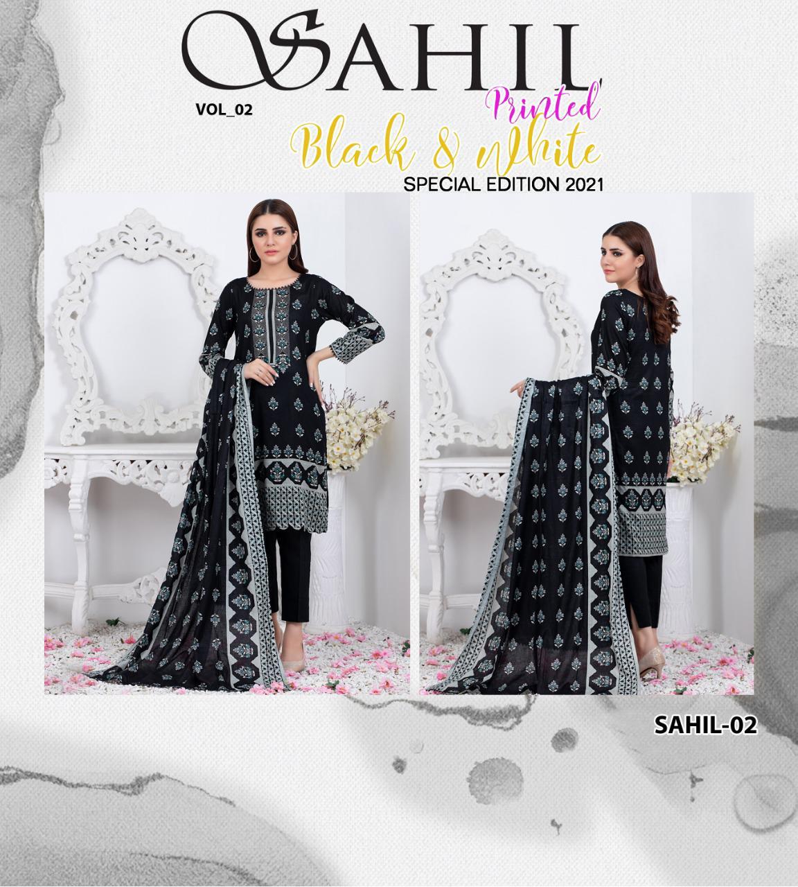 ZS SAHIL VOL 2 BLACK & WHITE PAKISTANI ORIGINAL LAWN KARACHI SUITS