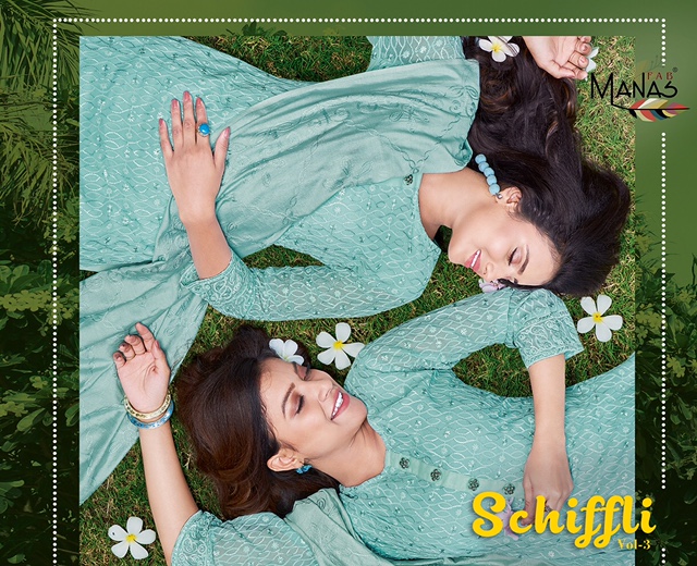 MANAS FAB SCHIFFILI VOL 3 LATEST KURTI PANTS WITH DUPATTA WHOLESALE
