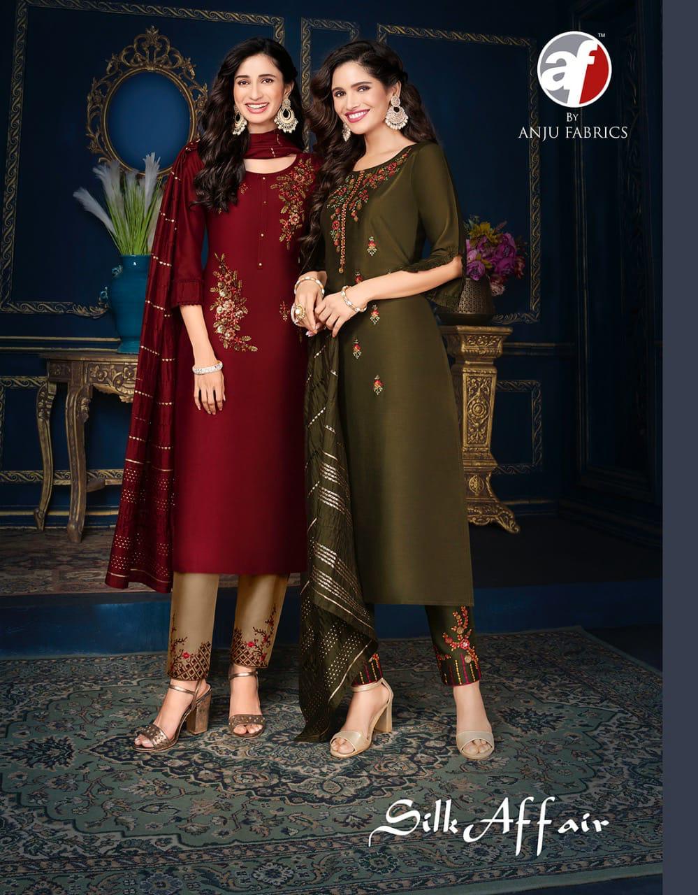 ANJU FABRICS SILK AFFAIR CATALOGUE KURTIS WITH PANT DUPATTA AT WHOLESALE
