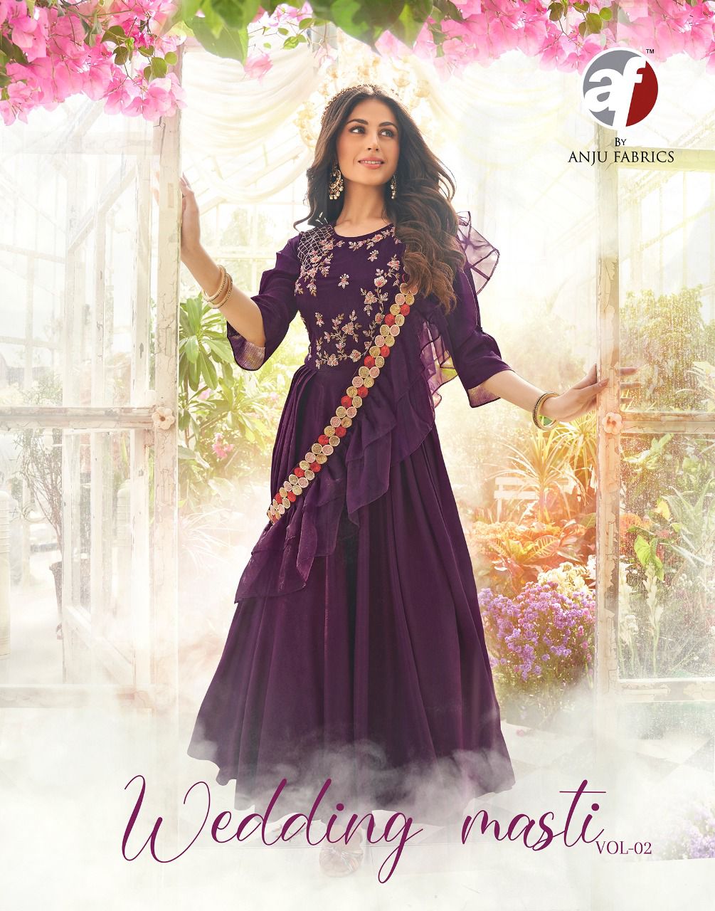 ANJU FABRICS WEDDING MASTI VOL 2 PURE CHINNON READYMADE HANDWORK GOWNS LATEST COLLECTION