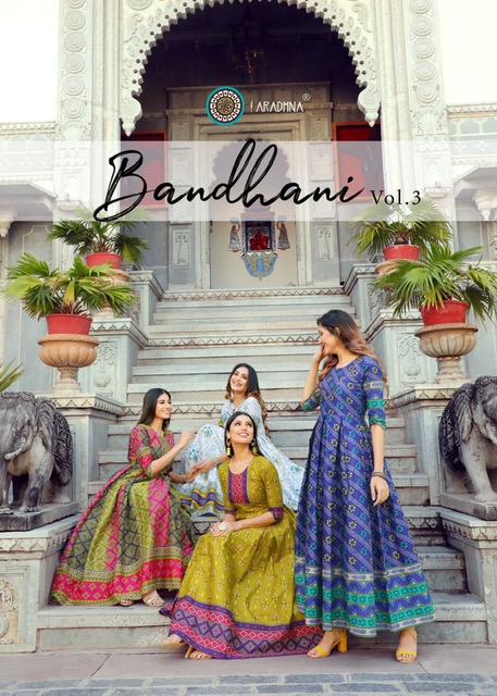 ARADHNA BANDHANI VOL 3 ANARKALI PRINTED KURTIS MANUFACTURER SURAT