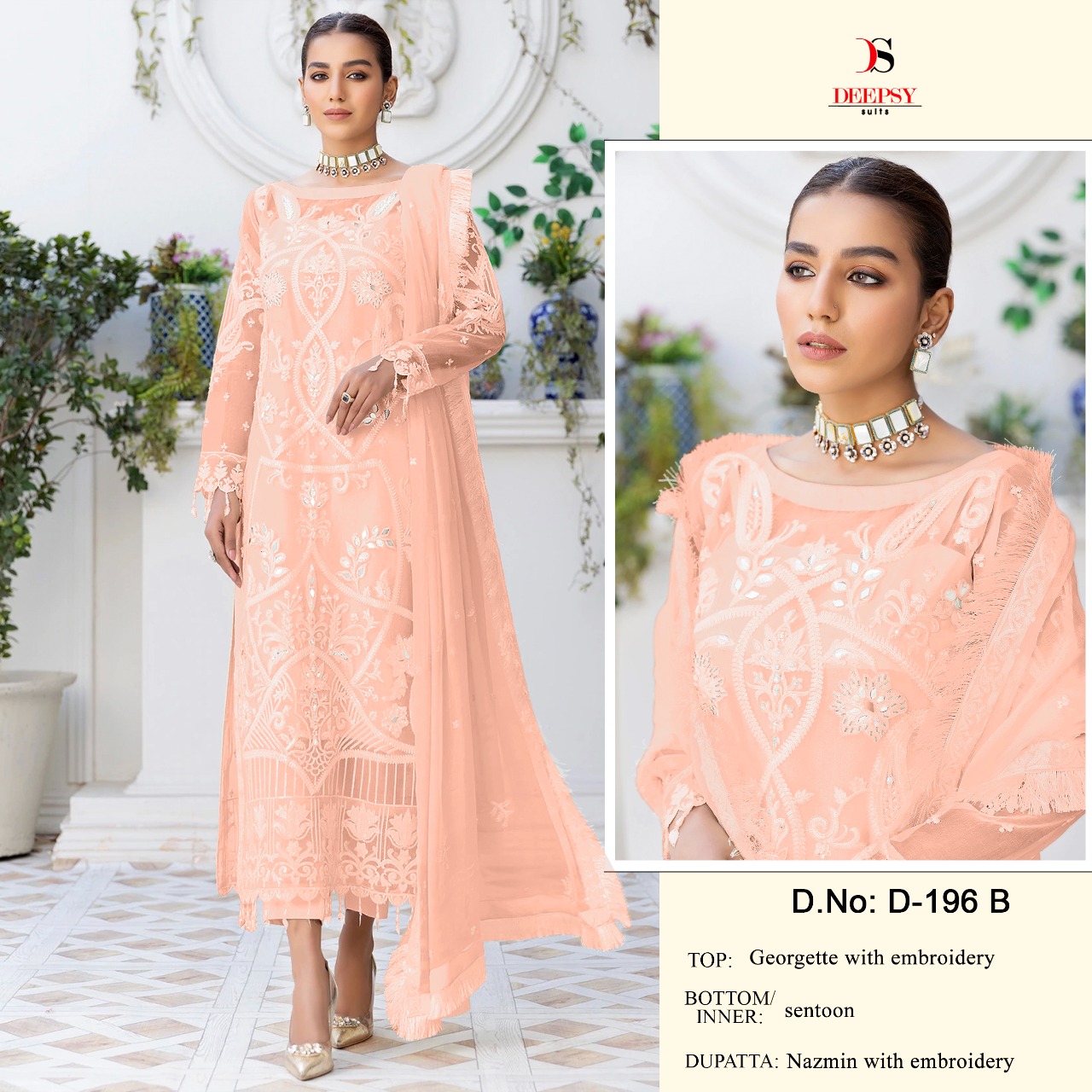 DEEPSY SUITS 196 SERIES GEORGETTE WITH EMBROIDERY SUITS AT SURAT