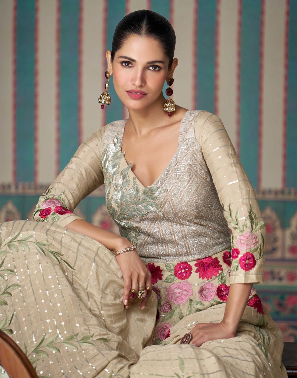 SAYURI DESIGNER ETHNIC FANCY CHINON SILK SUITS WHOLESALER IN SURAT