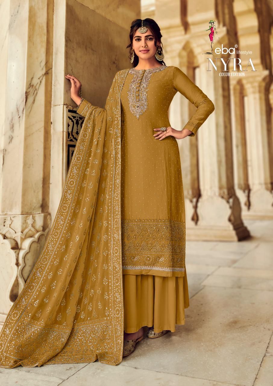 EBA LIFESTYLE MUSTARD 1336 TO 1339 GEORGETTE SUITS LATEST CATALOGUE