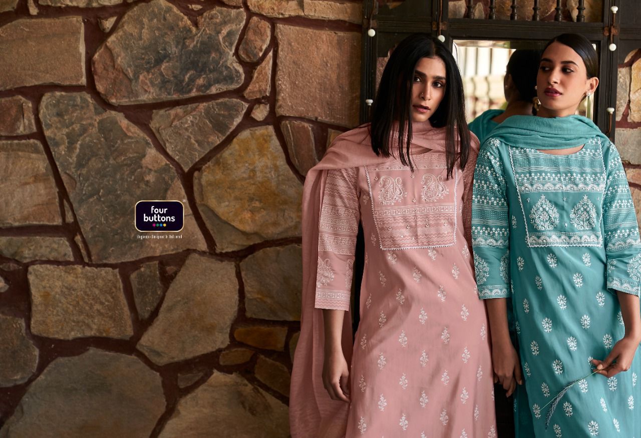 FOUR BUTTONS IVORY 2 COTTON FANCY KURTI BOTTOM WITH DUPATTA WHOLESALE