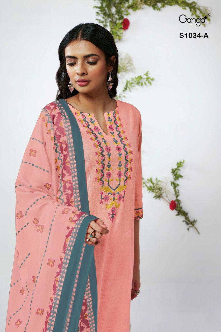 GANGA MAHONIA D.NO S1034 COTTON LINEN SALWAR SUITS AT SURAT