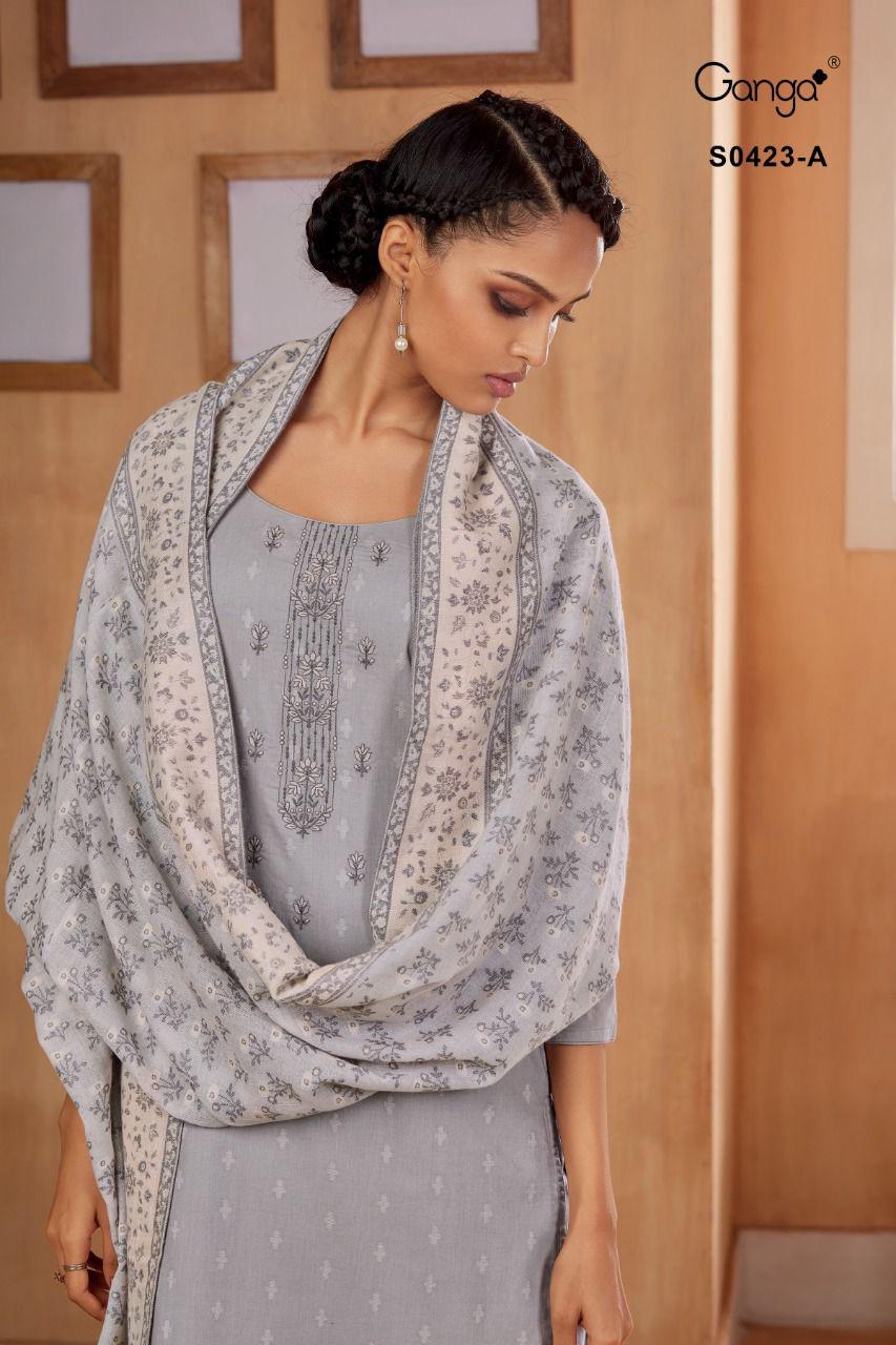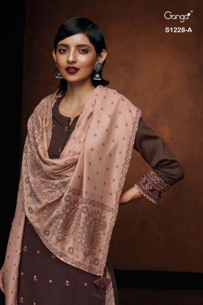 GANGA RUNA 1228 WOOL PASHMINA DOBBY EMBROIDERY WINTER SUITS WHOLESALE