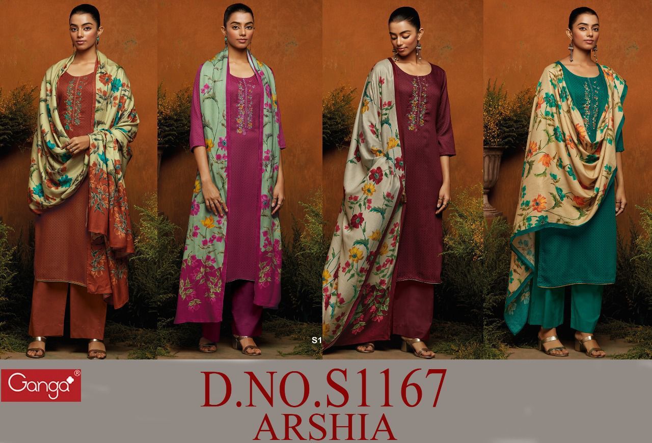 GANGA ARSHIA S 1167 PASHMINA DOBBY HANDWORK WINTER SUITS WHOLESALE