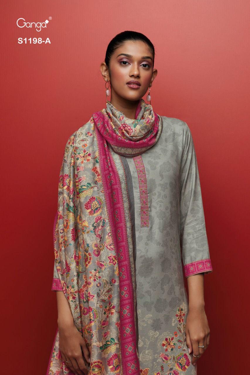 GANGA ARTHA 1198 SERIES PASHMINA DOBBY PRINTED HANDWORK SUITS