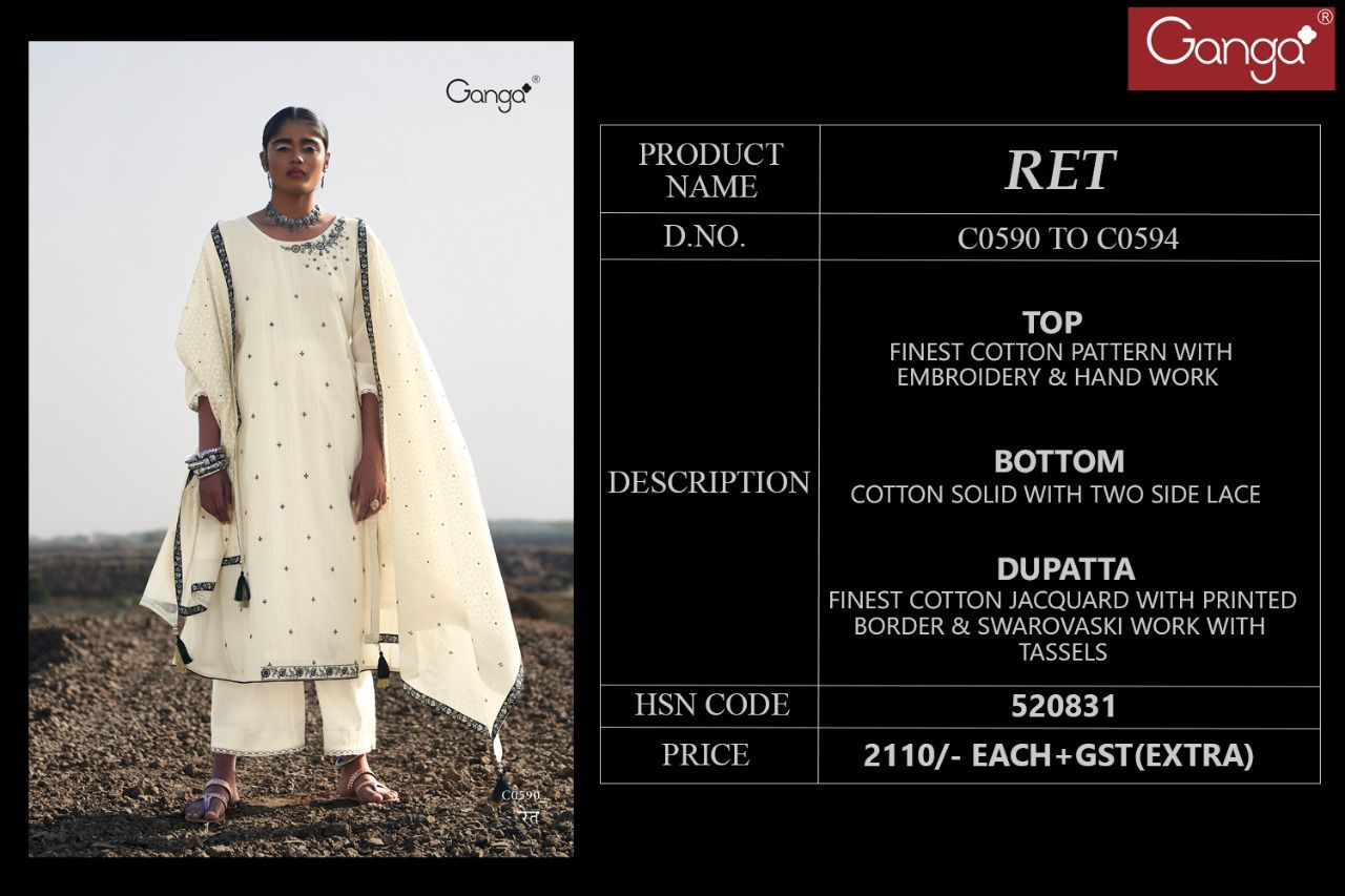 GANGA RET FINEST COTTON EMBROIDERY WITH HAND WORK SUITS WHOLESALE