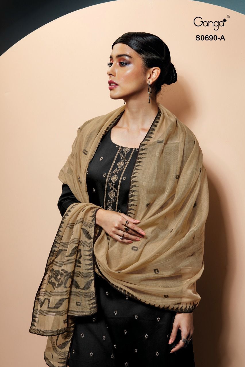 GANGA MAHONIA D.NO S0690 COTTON SATIN SALWAR SUITS AT SURAT