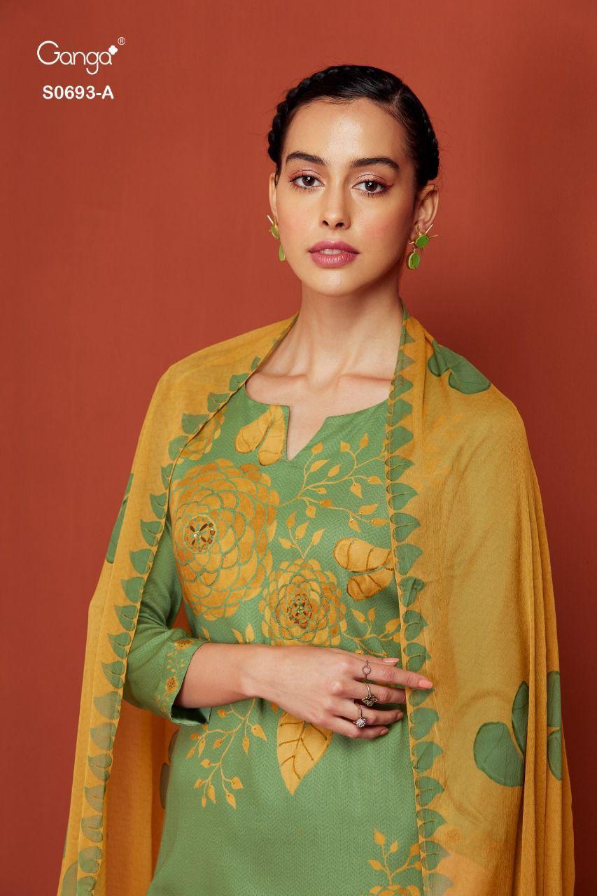 GANGA TANSY S0693 COTTON SATIN SUITS WHOLESALER SURAT