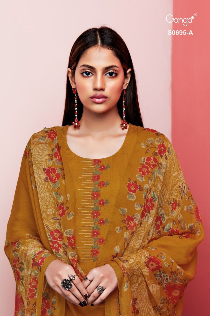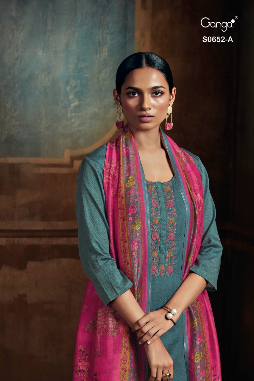 GANGA MAHONIA D.NO S0652 COTTON SATIN SALWAR SUITS LATEST CATALOGUE
