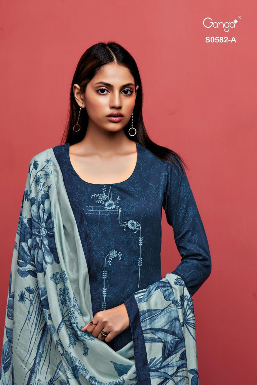 GANGA MAHONIA D.NO S0582 COTTON SATIN SUITS AT SURAT