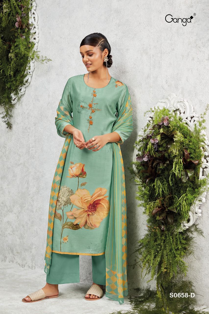 GANGA ALVA D.NO 658 PRINTED WITH EMBROIDERED SUITS AT SURAT