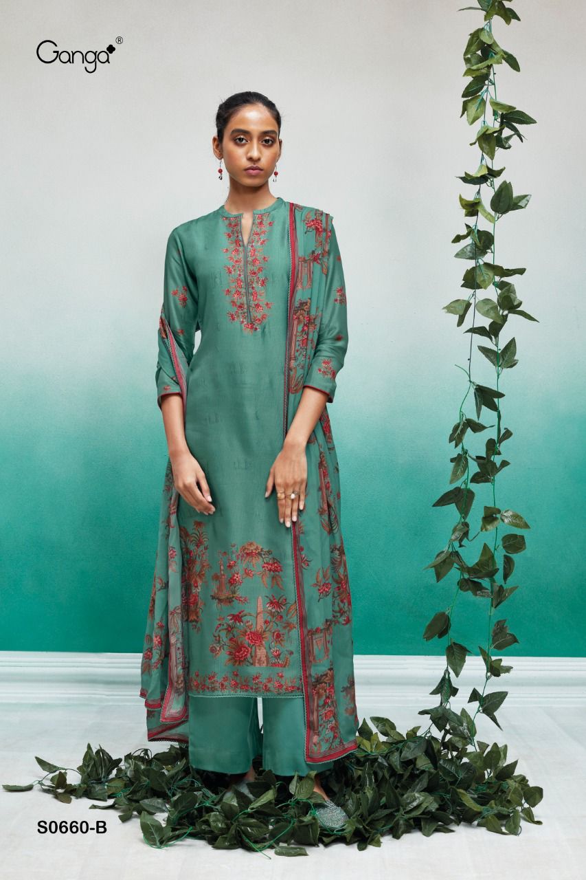 GANGA ATHENA WOOL DOBBY PRINTED WITH EMBROIDERED SUITS