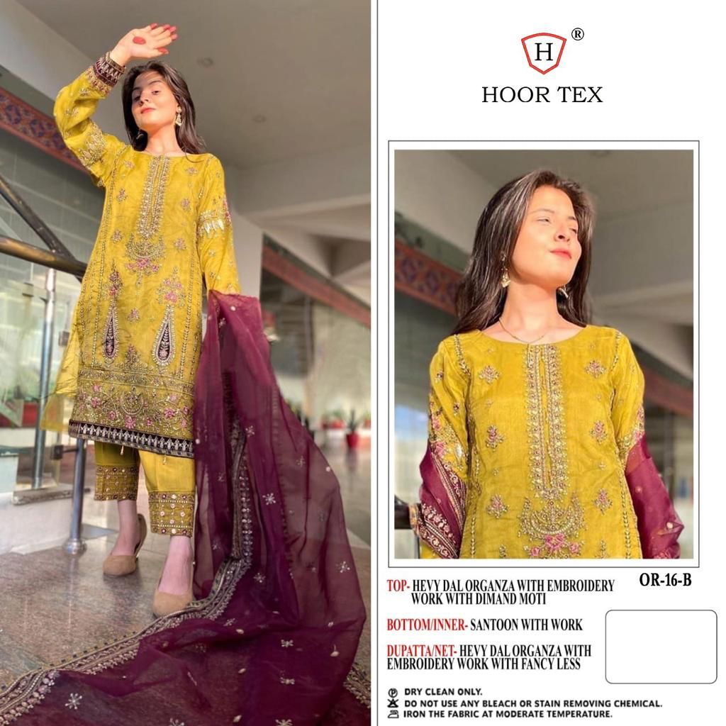 HOOR TEX OR 16 ORGANZA EMBROIDERY PAKISTANI SUITS WHOLESALE