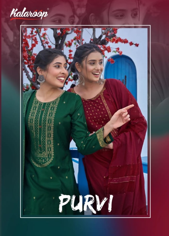 KALAROOP PURVI TOP BOTTOM WITH DUPATTA BY KAJREE