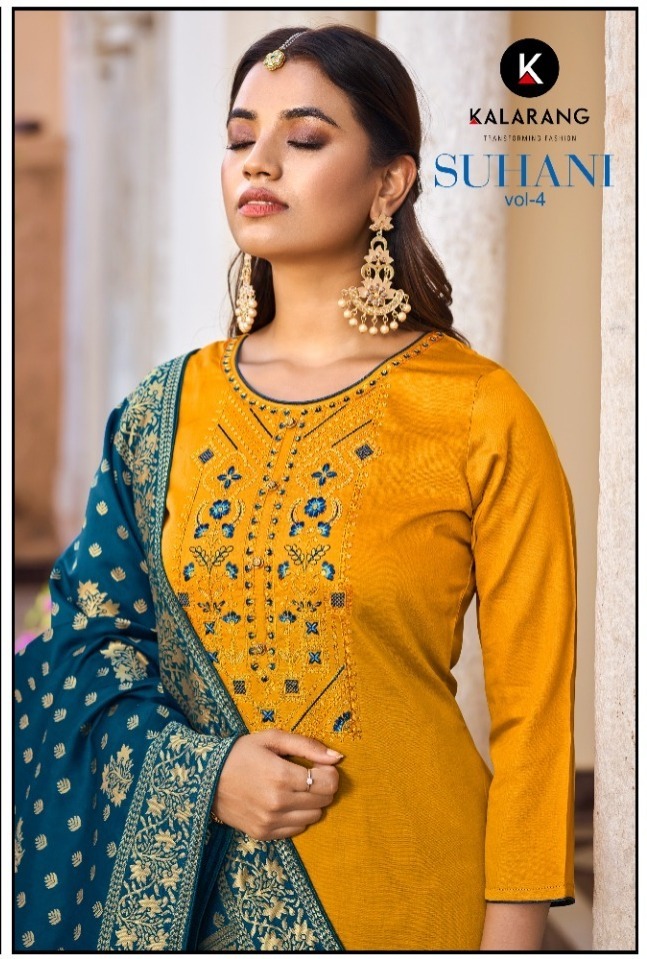 KALARANG SUHANI VOL 4 JAM SILK EMBROIDERY SUITS WHOLESALE