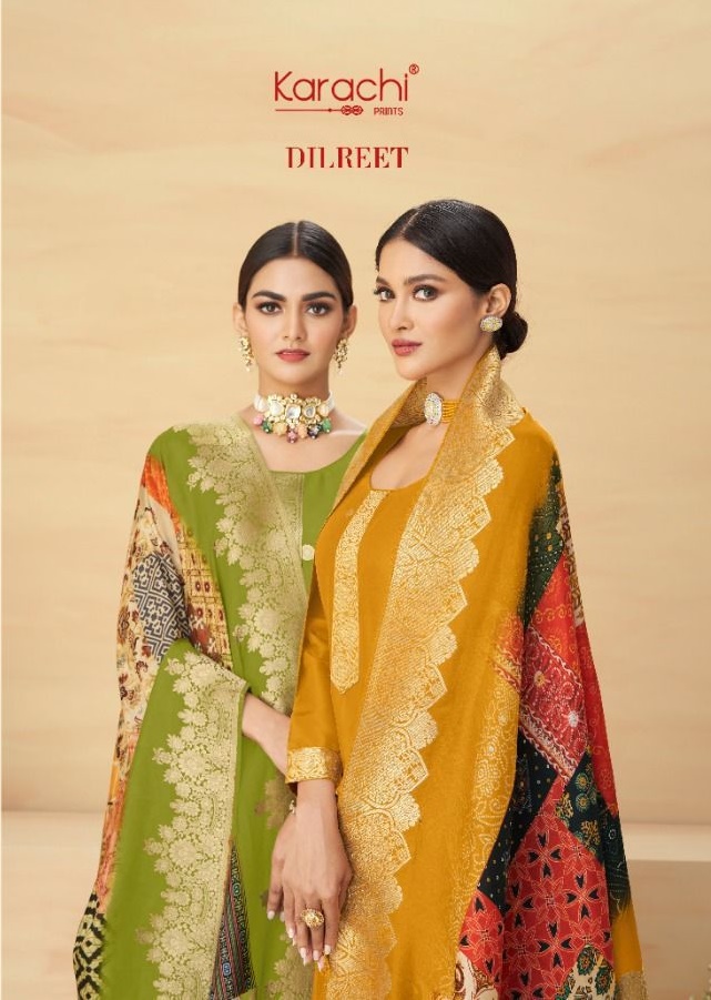 KARACHI PRINTS DILREET PURE DOLA JACQUARD SALWAR SUITS WHOLESALE