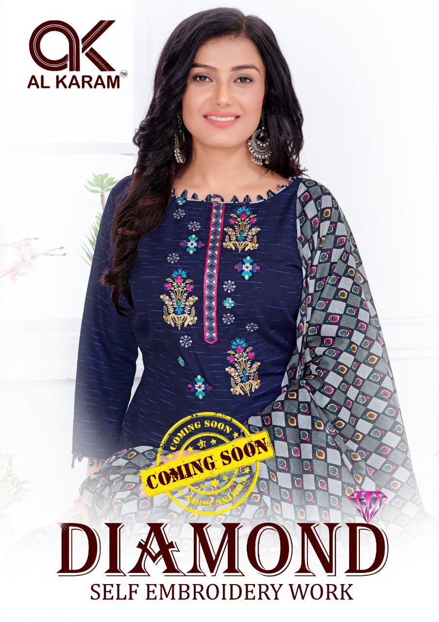 AL KARAM DIAMOND COTTON EMBROIDERY SALWAR SUITS WHOLESALE