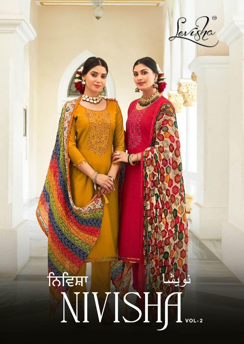LEVISHA NIVISHA VOL 2 RAYON SLUB EMBROIDERY SALWAR SUITS AT SURAT