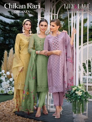 LILY & LALI CHIKAN KARI ORGANZA READYMADE HANDWORK KURTIS