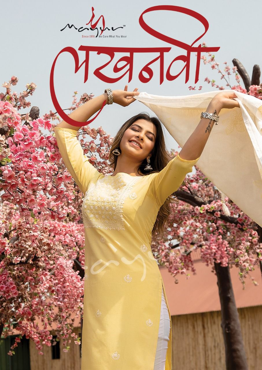 MAYUR CREATION LUCKNOWI VOL 3 KURTI BOTTOM WITH DUPATTA AT CATALOGUE