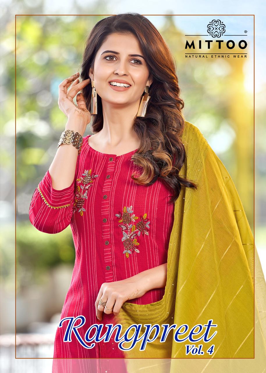 MITTOO RANGPREET VOL 4 KURTI PANT WITH DUPATTA AT WHOLESALE