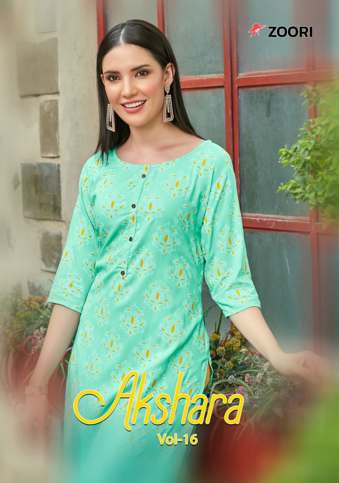 ZOORI AKSHARA VOL 16 FANCY RAYON KURTIS BY MITTOO