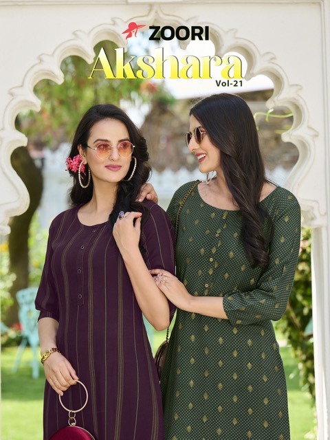 ZOORI AKSHARA VOL 21 FANCY RAYON PRINTED KURTIS MANUFACTURER SURAT